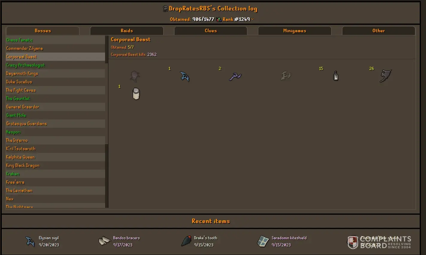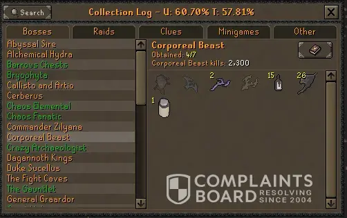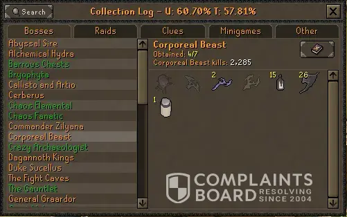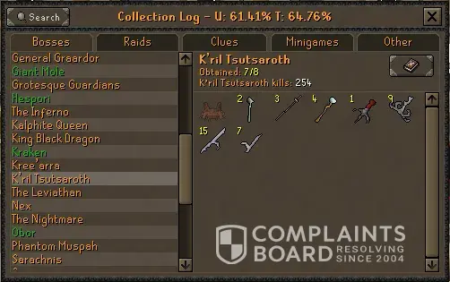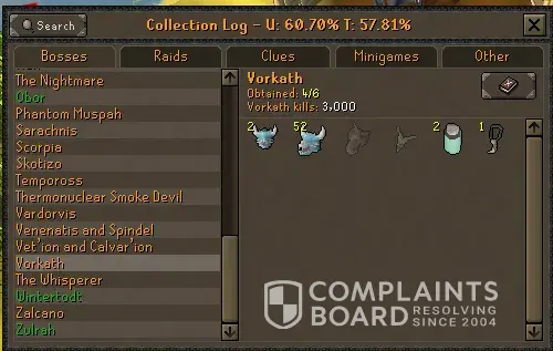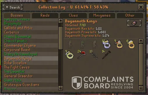 I've been trying to get my account unlocked for 5 days. I don't need any information changed and I am just getting denied a password reset request. Just wasting my time doing things except, you know, the thing I am not asking for. I have the email, the password, the two step authenticator, but can't access the email because it was a fresh email from making multiple HCIM. Microsoft locked me out of the email because I missed something case sensitive even though I know the password. They wont let me recover it because its never had an email sent to anyone on it, so I have no information in that field for them to unlock it even though I know everything else about the account. Now I've lost an ironman with 62,400 boss kc. With 2631 Corp kills with an Elysian sigil, 550 days of playtime and 959 collection log slots even though I can name my daily schedules, each kc i got every important drop, and have 6tbs of video and 30000+ screenshots and all my transaction ID's for buying years of membership at once. Terrible customer service. Ive been hacked twice in the past and the hacker from an entirely different country had an easier time accessing my account than i do from the spot Ive played the whole time for 5 years daily on the account. I made the account in April 2019, so literally 5 years daily except two days total in those 5 years. Those are just random screenshots all from the same account.