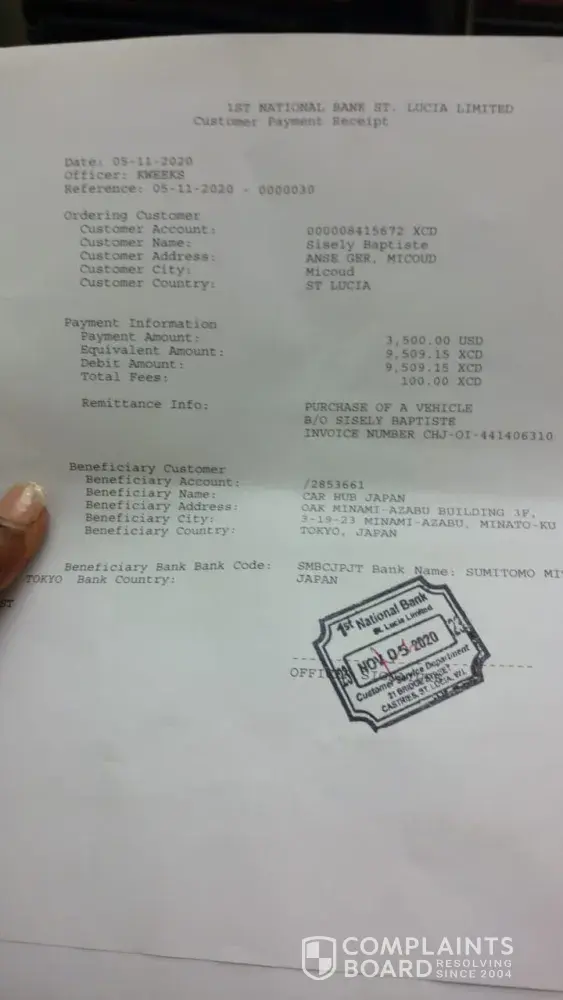 Car hub japan ignoring me after taking money for two vehicles