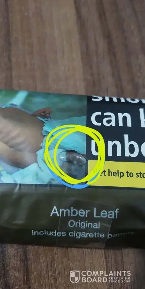 I bought a pack of 50g Amber leaf tobacco never had any problems before but half way through the pack I found a piece of glass and I was horrified this could have been very dangerous. I would be grateful if someone could look into this for me as I would not like it to happen anyone else.