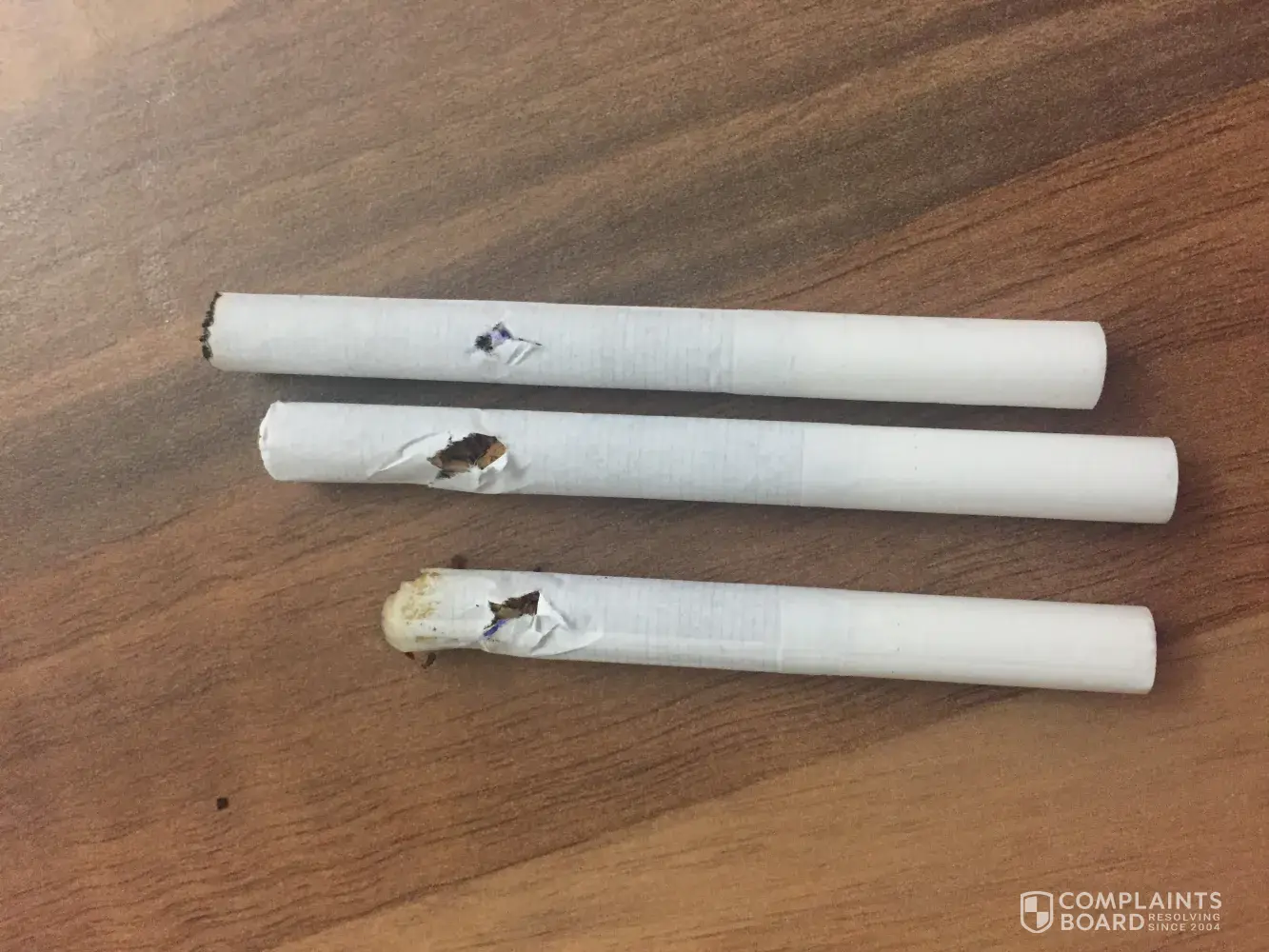 After finding my cigarettes would not smoke in the normal fashion I discovered a inch long stick of wood in one. This is not acceptable with the price of your product being high I would exspect a much higher quality of product. Very disapointed to say the least. Im sure you will agree with me when I say this lets your product down and im sure this is not a isolated incident. Pls advise on you intended plan to resolve this situation. Many thanks. M thompson