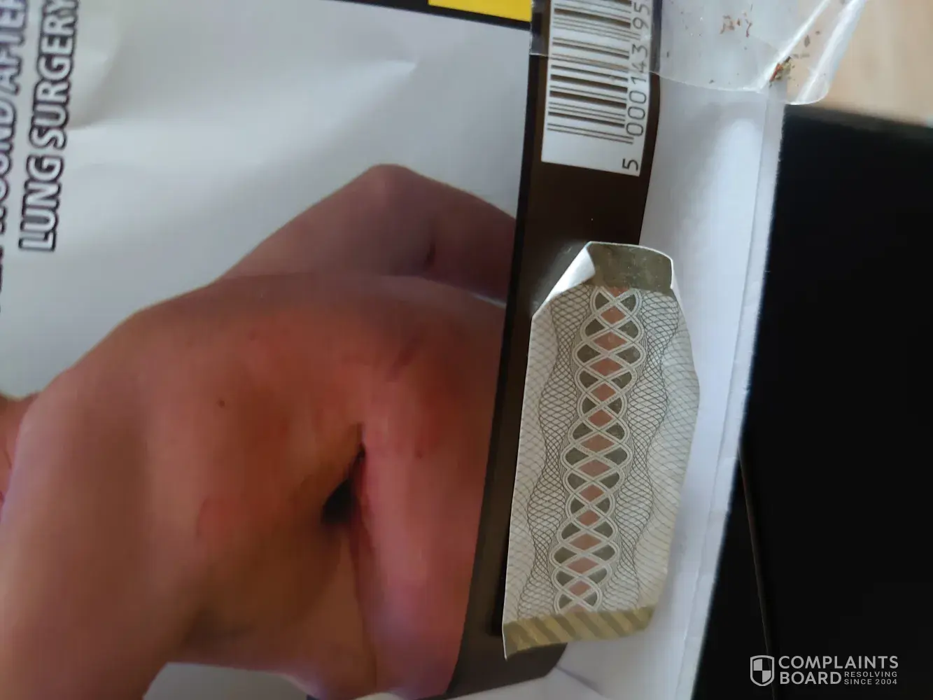 I purchased this pack of cigarettes today, I smoked two cigarettes from the pack the third cigarette as you can see from the picture which has been lit, I noticed it wasn't right, I then searched the whole pack to find two more cigarettes with the same default (a cut in the side of the cigarettes) the pack was fully sealed when I purchased it therefore the defect has occurred before being sealed! I am extremely angry as all my family members smoke these cigarettes and spend a considerable amount each week on them, unfortunately if this doesn't get resolved I will be changing brand of cigarettes I smoke and will be advising my family members to do the same