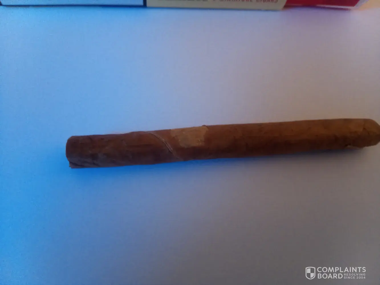 'If' the product is a genuine JR Freeman & Son/Japan Tobacco Product then I am appalled by this sub standard issue, the outer tobacco leaf wrap is showing a clearly visible paper tear and cheapens the whole product for me, I ask myself would Mitsuomi Koizumi find this acceptable as a product he would enjoy himself? I would think not.