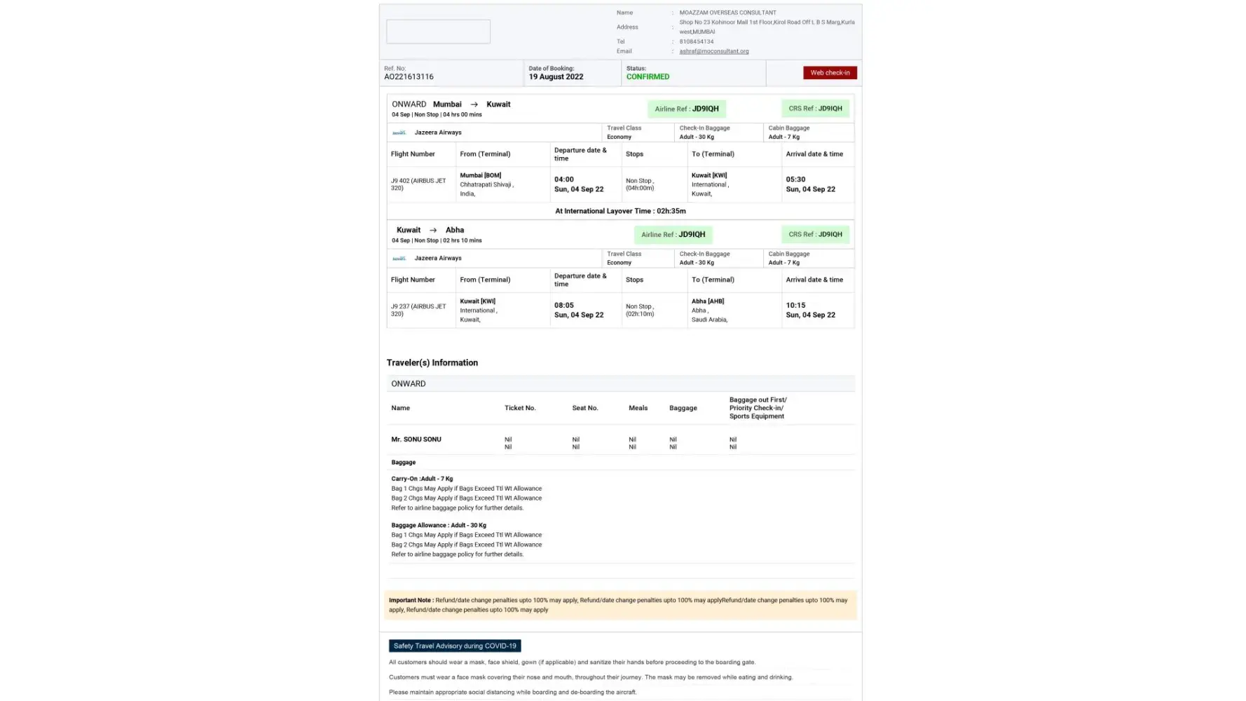 Dear head of Aljazeera Airlines Headquarters Good day, I am Kamran Ali Shaikh a Indian Citizen friend of Sonu (pax), I book the ticket for Bom to Abha on 04 sep PNR :- JD9IQH and issue date 19Aug. But the ticket was issued for Abha & instead the flight Enroute to Dammam Location Airlines have asked him to board for Dammam or else to stay at Kuwait only, This is something totally wrong. As the passenger cant be at the kuwait airport since he is employed in KSA in Abha Region. he passenger has waited for Long hours Stranded at Kuwait airport. without any meal or Support from the AIRLINES. All his travel schedule, Driver pickup has been hampered by the Airline fault. All costs have been borned by the candidate. Dammam is 1300km distance to Abha (Candidate has to board the flight anyhow since he cant loose his job denying to travel) due to negligence of airline. We request you to please look into this matter with top priority & check with the Airline's. As you are the Authorised person to discuss & resolve the same form the Airline.
