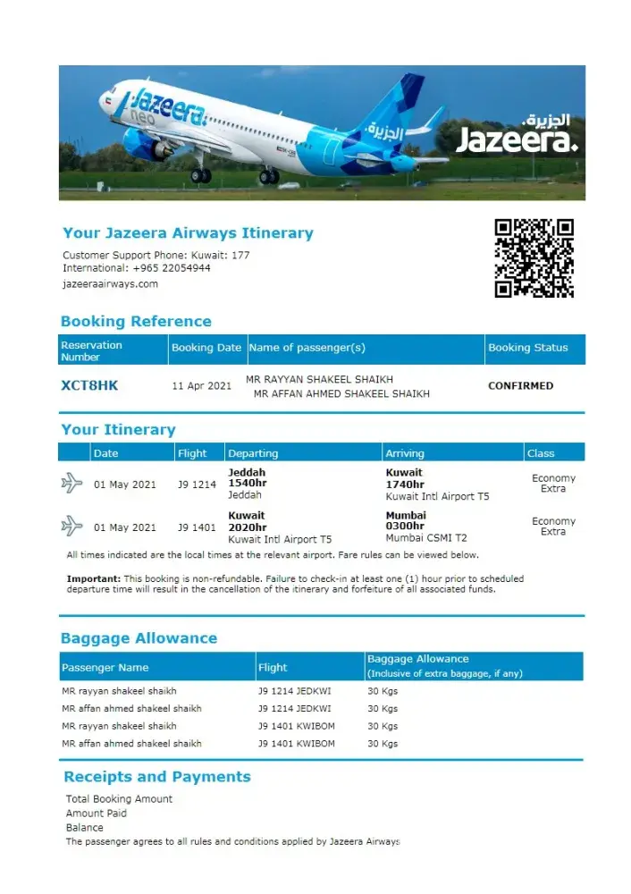 As we used to from Jazeera Airlines is very reputable company