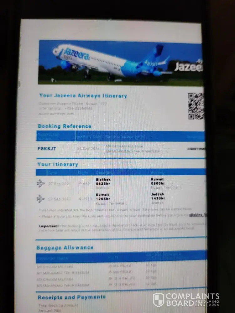 I strongly believe jazeera airways will investigate this incident and revert to compensate my loss
