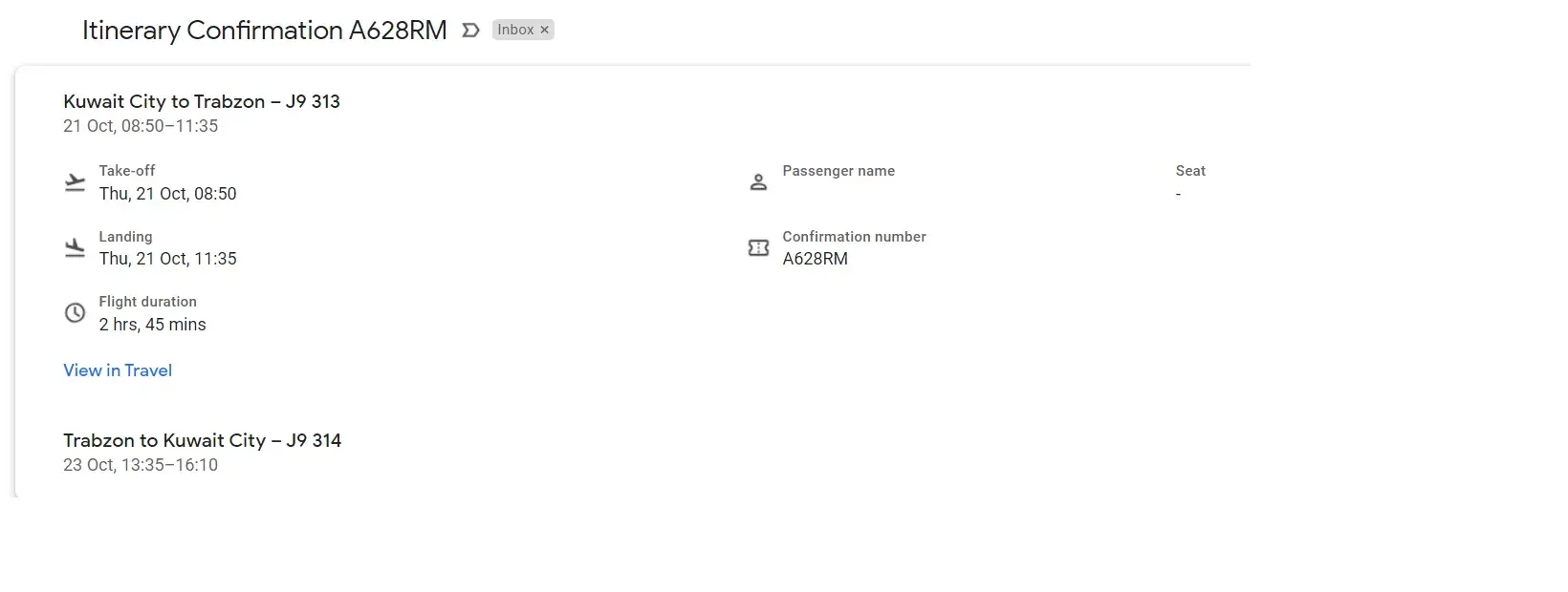 So practically they were suggesting me to take a flight from Kuwait to Trabzon Airport, have a coffee there and come back with the same flight.