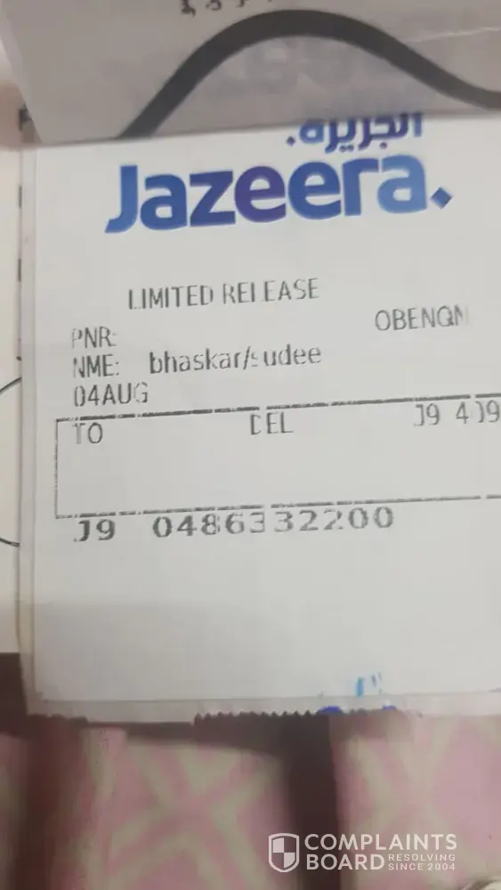 I have travelled from kuwait to delhi on 04-Aug-19 at Aljajazeera (J 409) flight. As i have not received my baggage( someone else baggage was there with my name tag), i have given multiple complaints, but no satisfactory response from your side.