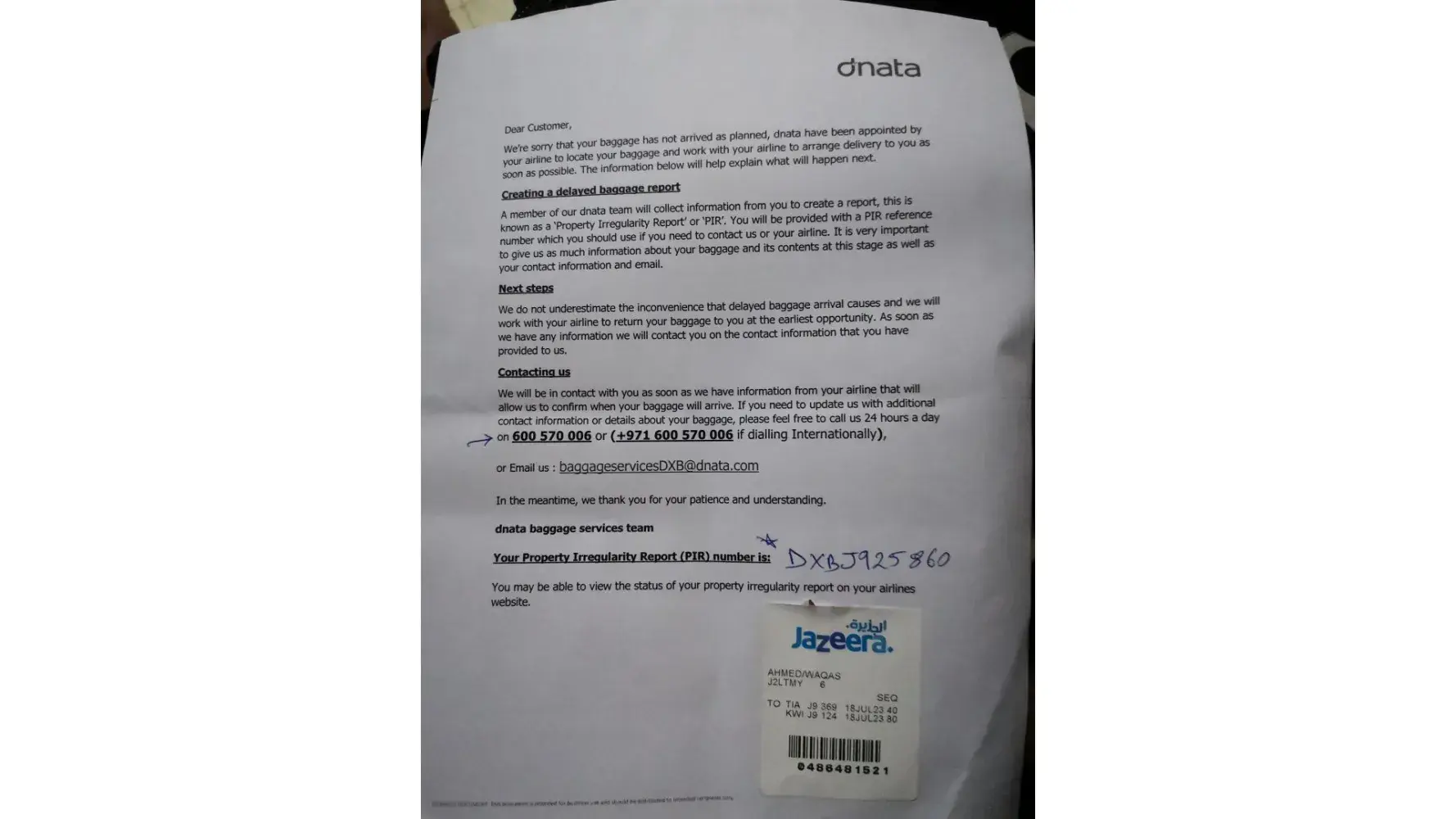 I complained about my bags . I travel albania tirana to Kuwait and Kuwait to dubai (19.07.23)but when reach in dubai my bags no come. Please write my bags complain.