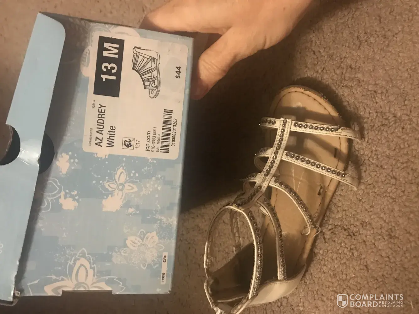 Bought this pair of sandals from JC Penny for my little girl who absolutely loved them. She wore them only three times before they started coming apart. The first strap came out but she was still able to wear them but by the end of the day the second strap had also come out. Also, as you can see in the pictures attached, the rhinestone beading also started coming undone from the straps.