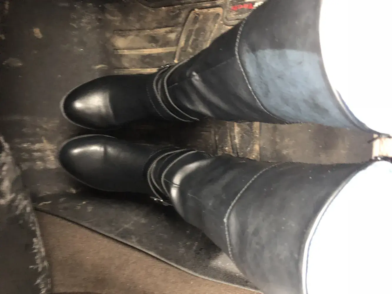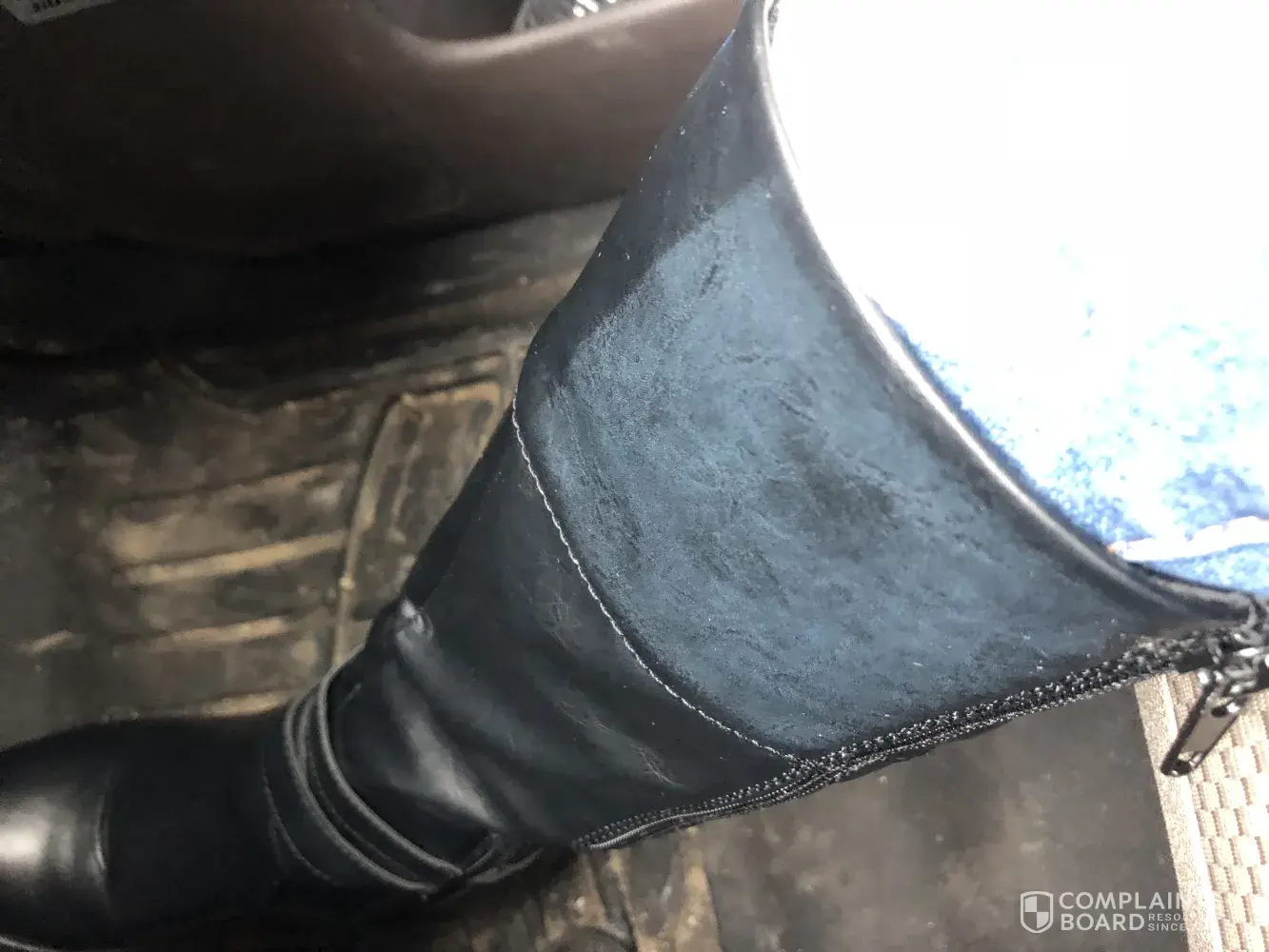 I received a pair of boots for Christmas and have worn them about 5 Times. Yesterday I noticed a faded spot on the right foot boot on the upper left top side. The black color appears like it faded, it does not rub off. These are brand new, I never used or put it near any form of spray products, heat producing, or anything of that matter. Is this common for these boots or is it just a weird encounter? Their very comfortable boots just wish they didn't get destroyed already.