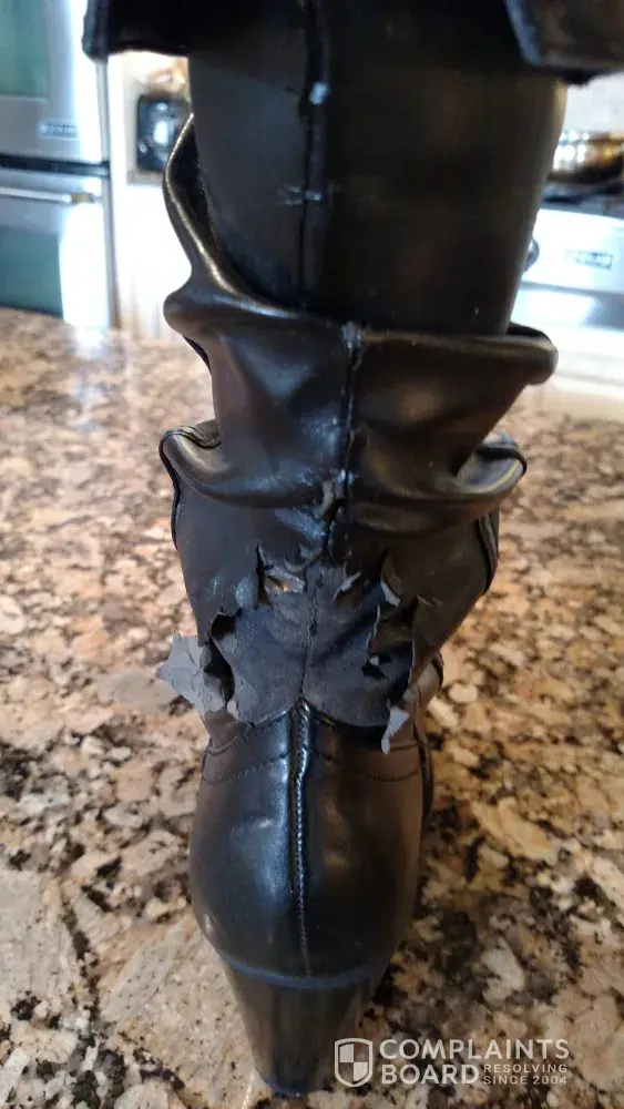 These boots were purchased at JC PENNY and not worn until a company Christmas party in Dec. 2017. They were only worn ONE time and are so disgusting now, cannot be worn again. The back outer layer is peeling off after only wearing them one time. Very disappointed in the product. Won't be buying this brand again and want everyone to know the poor quality that they are selling.
