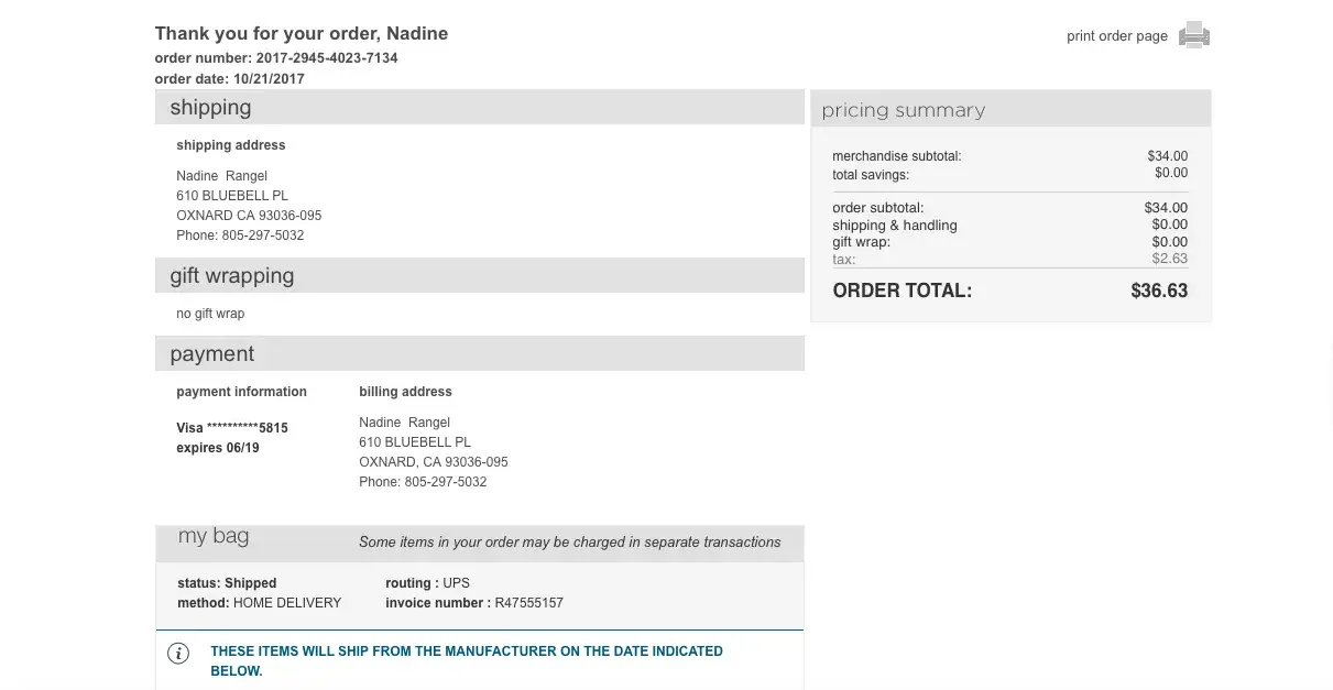 I don't know how, but they confused addresses and sent my order to someone else. I would have never found it out if they hadn't called me to ask whether I liked dealing with them or not. I had no idea!