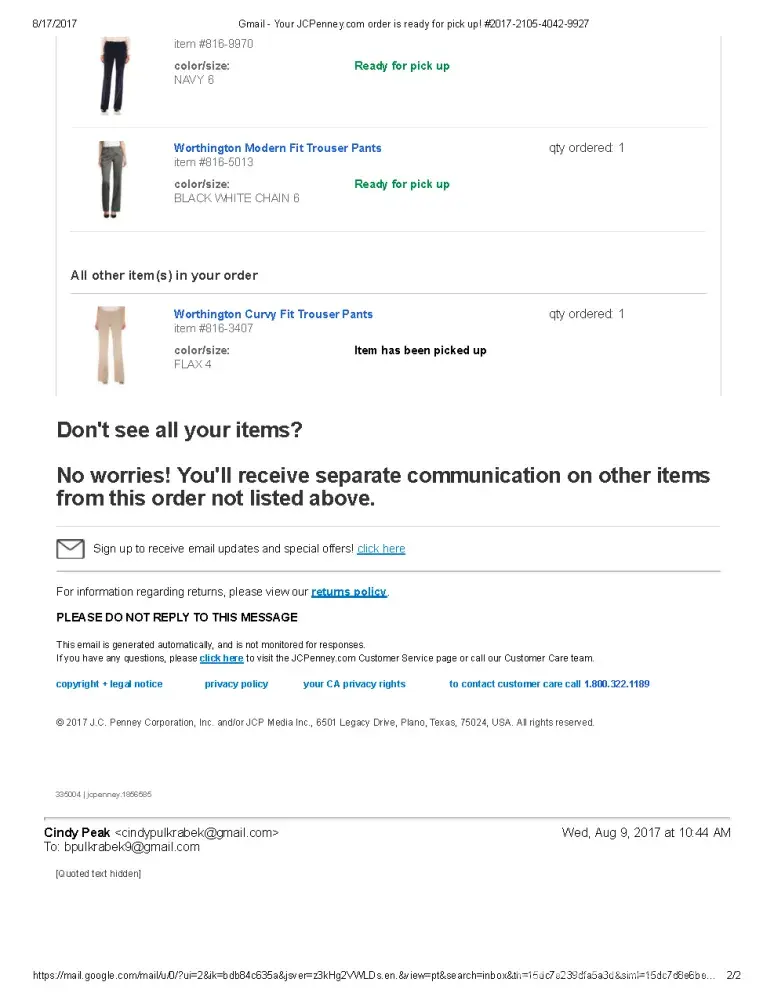 Thanks JCPenny for a "wonderful" experience and unforgettable hours spent for nothing.