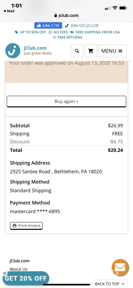We found clear and detailed contact information for jClub. The company provides a physical address, phone number, and email, as well as 4 social media accounts. This demonstrates a commitment to customer service and transparency, which is a positive sign for building trust with customers.