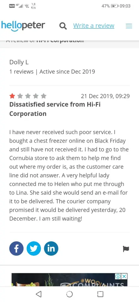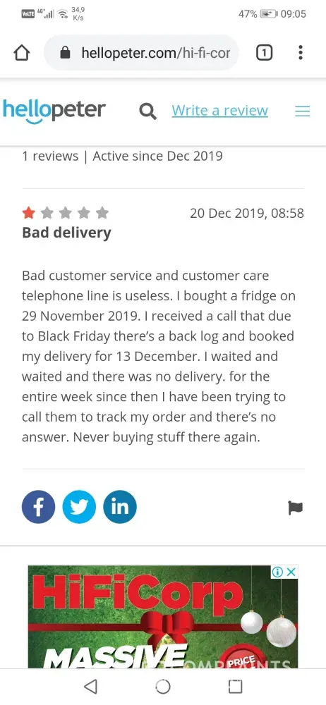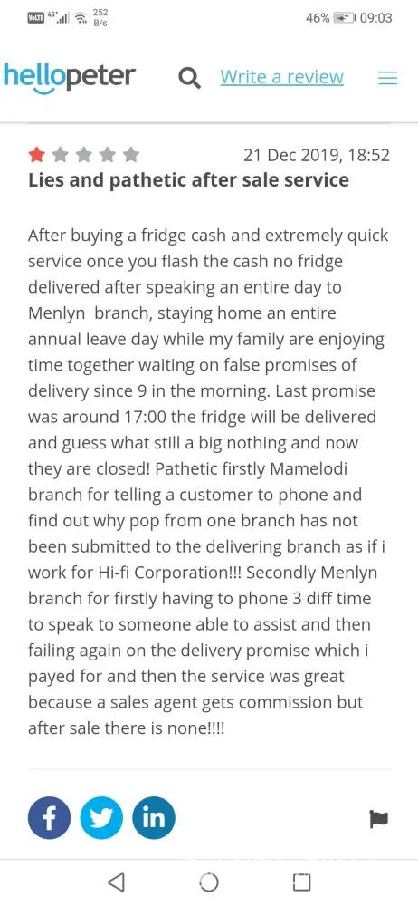 I am really not someone who complains but HIFI CORP has me up in arms waiting for a fuxking washing machine to be delivered.