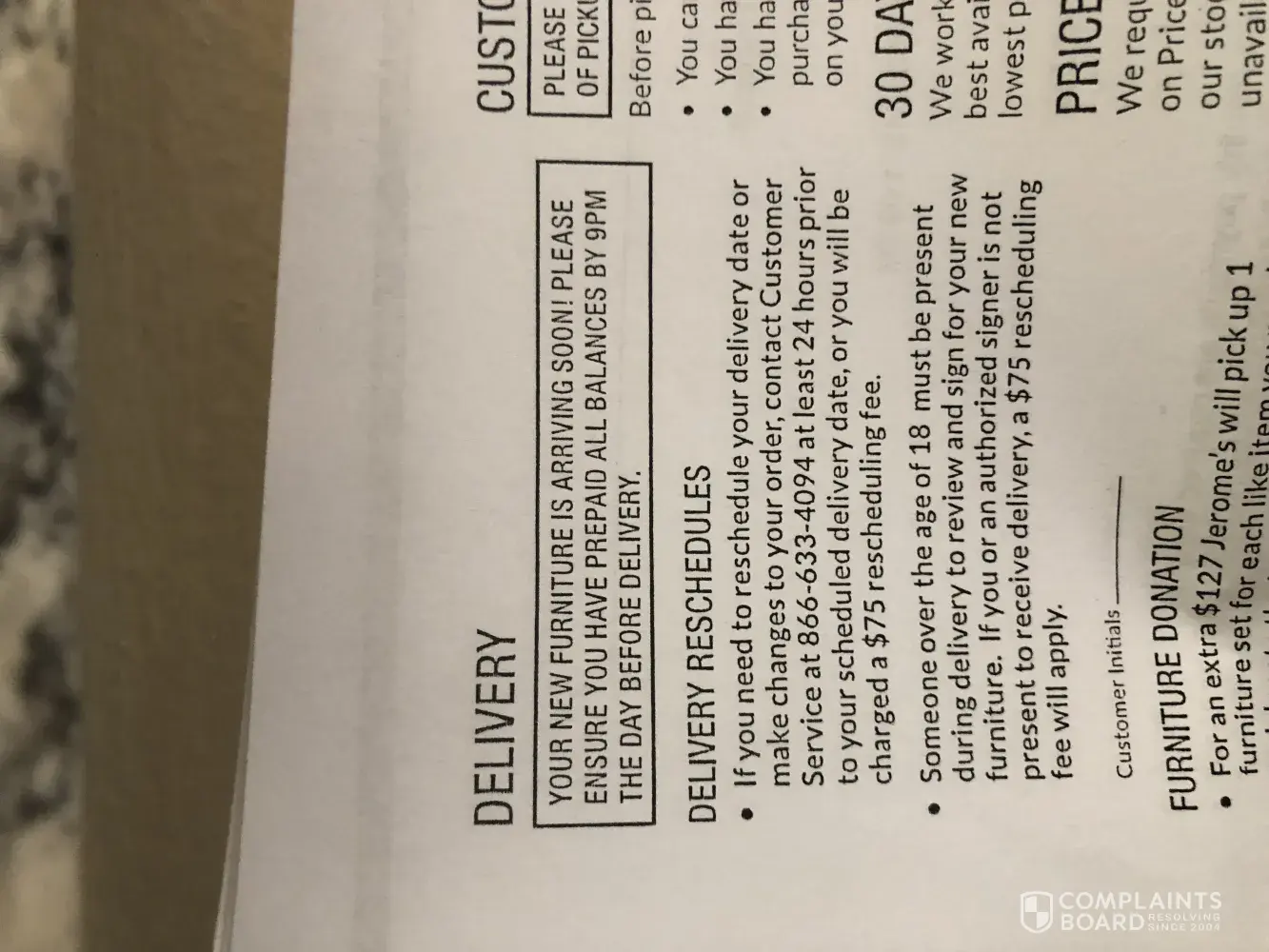Purchased a sofa sectional and chaise August 2018. The delivery was a nightmare, was given a 4 hour time frame when delivery would occur. No delivery and the chaise was damaged so they couldn't deliver. One day wasted. Rescheduled on a Sunday, they delivered one hour after promised time. I can't just stay home and wait for deliveries. I work! Now, fast forward to July 2019, the sofa sectional and chaise material is unraveling and the frame to the sofa sectional is breaking. I have no children, no heavy weight placed on it. Not a lot of use. Very cheap materials used to manufacture the furniture and poor workmanship. Customer service was just as bad. Called to confirm to have a technician come and take "pictures" of the damage and they scheduled from 9-11:00 am on the day I have a doctor's appointment, never mind it's for my cancer care. Told the representative I had a medical appointment and if she could schedule for later and she said she doesn't know the technician's schedule so she can't promise me anything. She then asked me when my doctor's appointment would be done and I told her that's a stupid question to ask because I can't predict what would happen at my doctor's appointment and she said' "I'm going to end this call" and hung up on me. Several hang ups and hours later still waiting to resolve my problem with this defective furniture I purchased. This was my first and definitely my last purchase with Jerome's Furniture. Their commercials tell you they have a better price and they do because it's cheap crappy furniture they sell. Good quality furniture is worth the price but you won't find it at Jerome's.