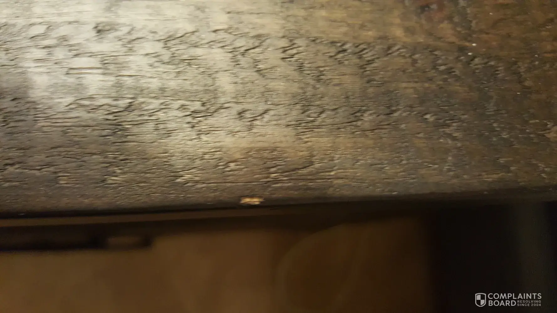 1. purchased sofa table w/guardian warranty. the table is made of 'distressed wood.' while cleaning the table with a cloth, the cloth snagged on the table and pulled of a piece of wood. there is also wood chipping away around the center of the table. filed a service request: guardian told us it was a defect in the table and jeromes tells us it's not. so therefore, NO ONE WOULD FIX IT!