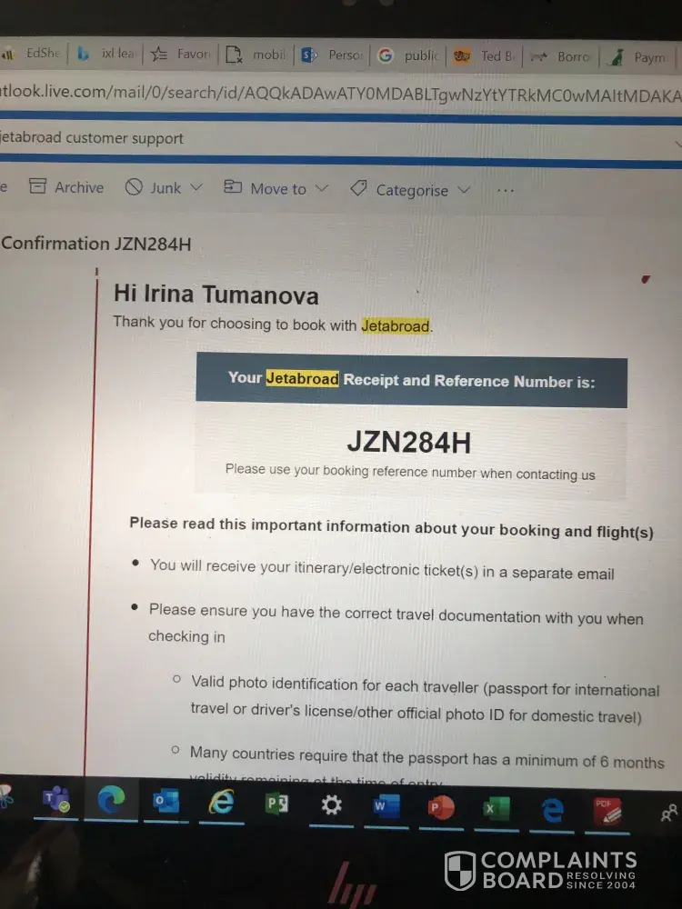 Booking number CIDHWJ, waited 4 weeks no response and contacted flight emirates couple times and they refer back to jetabroad. This is fraud, taking peoples money and not providing the service.