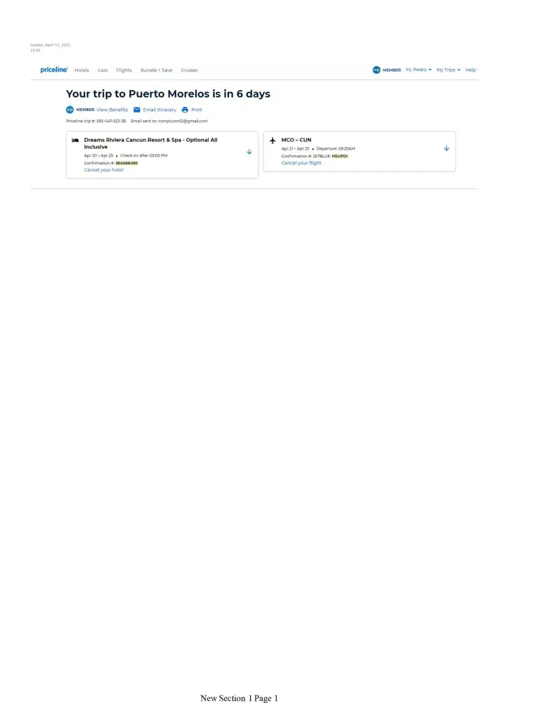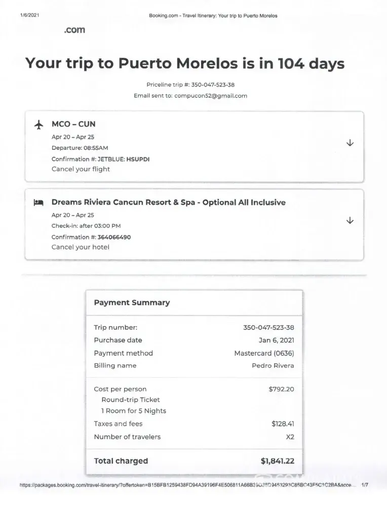 We received a e-mail with a change in flight day to our trip to Cancun Mexico, we had made reservation with Booking.com for a 6 day stay at Dreams Riviera Cancun Resort & Spa, and then added the flight. Back in Jan 6th of this year, for a total of 1841.22, we receive a notice acouple of weeks ago about the flight change with no explanation. We immediately contacted Booking.com, who transferred us to Priceline, We've contacted them ten or more times in 6 days, after waiting an hour or so on hold, they concluded they would fix the problem when they contacted reservation depart at Dreams Riviera Cancun, they never returned the calls. We Call the reservation depart at Dreams Riviera, and they told us because it's a third party reservation they couldn't help us, but price-line could, so we called Price-line again, and there solution was to Cancel the reservation and rebook, we didn't because we called the Resort, and they would not have the same accommodations or the same prices. I have never been in such a situation I just feel like a ping-pong ball. Here are the details below