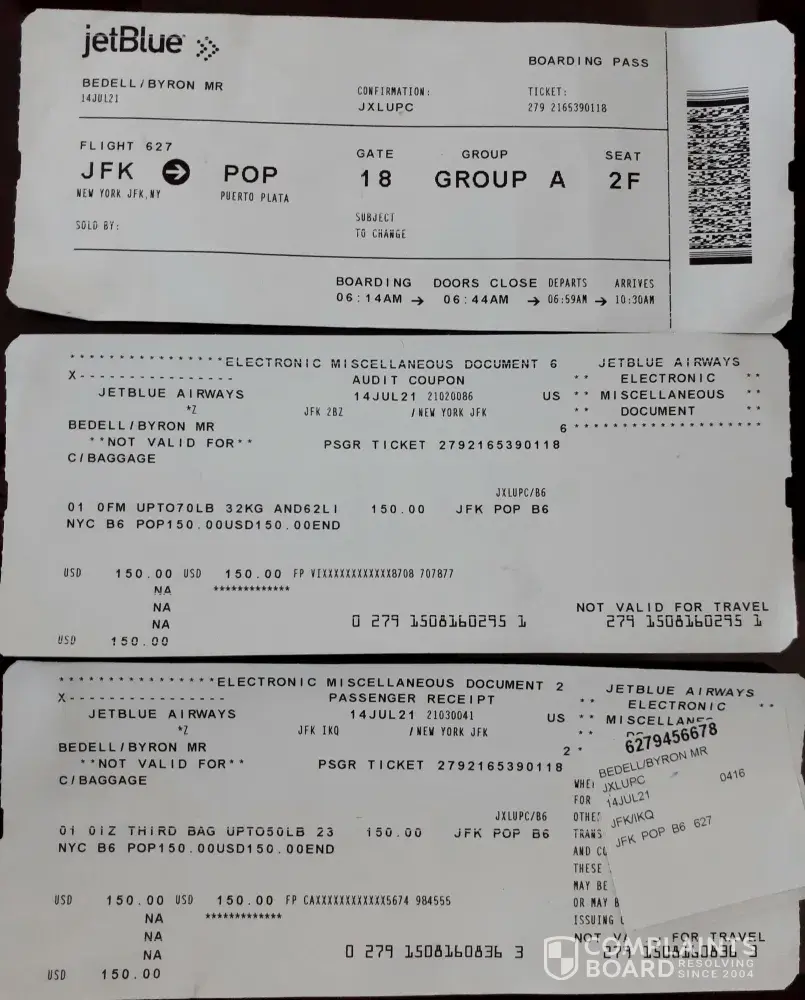 Departure City & Flight No: FLL (Jet Blue 2202) - JFK (EK 202) - DXB