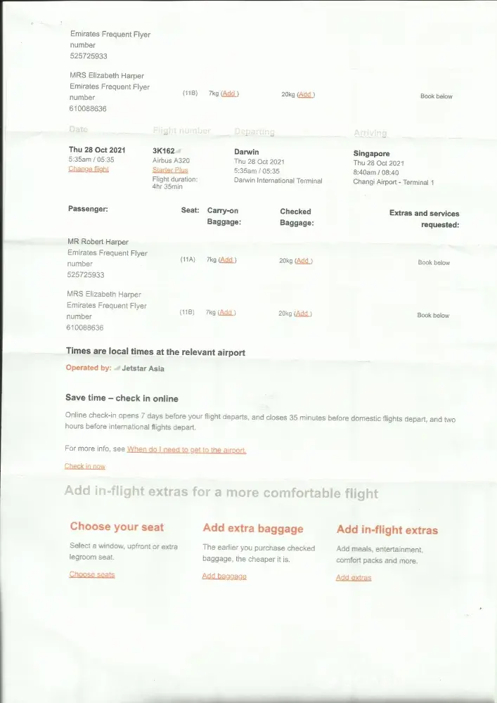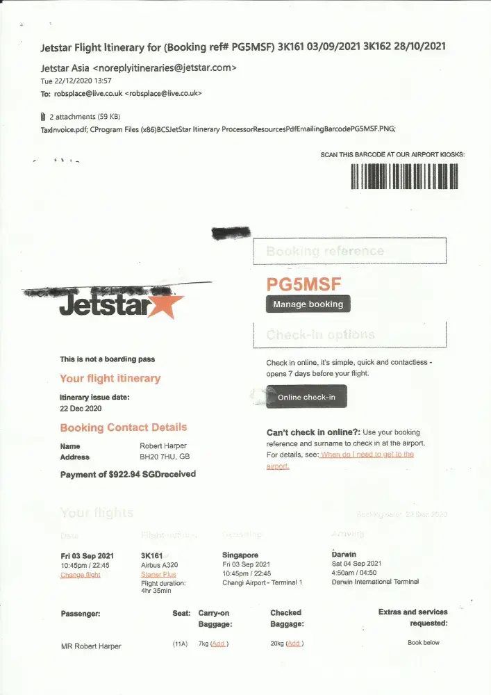 Qantas booking ref. 5612KD / Jetstar ref. PDUH4Y