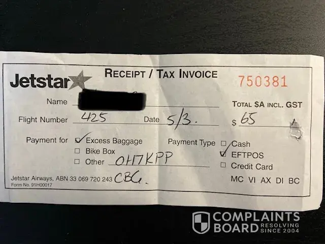 I would like to request a refund for the excess luggage charge -$65, I received on 23/12/2019 - Flight no: JQ442. I had my hand luggage weighed and was told it was over and pointed in the direction of a staff member to pay for excess. When I asked how much over I was ignored. I weighed my bag prior to leaving my house and it was 7kgs exactly. The staff member had previously weighed the person in front of me and was told even though they were 2kgs over that they didn't have to pay any excess. I have a receipt for the payment but no record of the weight. The Jetstar staff member was rude and dismissive and rushing everyone.