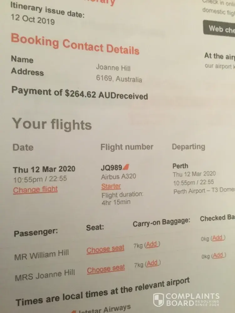 Overall, a really poor experience with Jetstar - misleading communication and I am baffled at how I can even raise a complaint with them. I believe that as they did not provide the service I had paid for, that I am entitled to a full refund. They misled me as a consumer into thinking that a credit voucher was my only option.