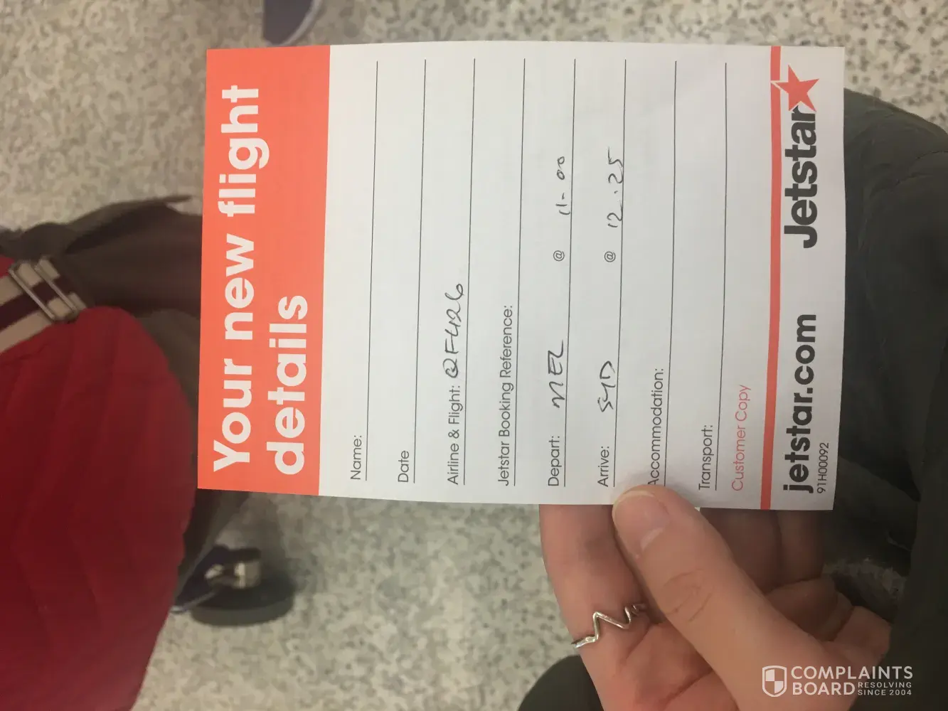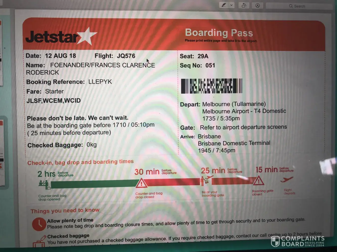 I was booked on a return flight to Melbourne on August 4th at 1450.