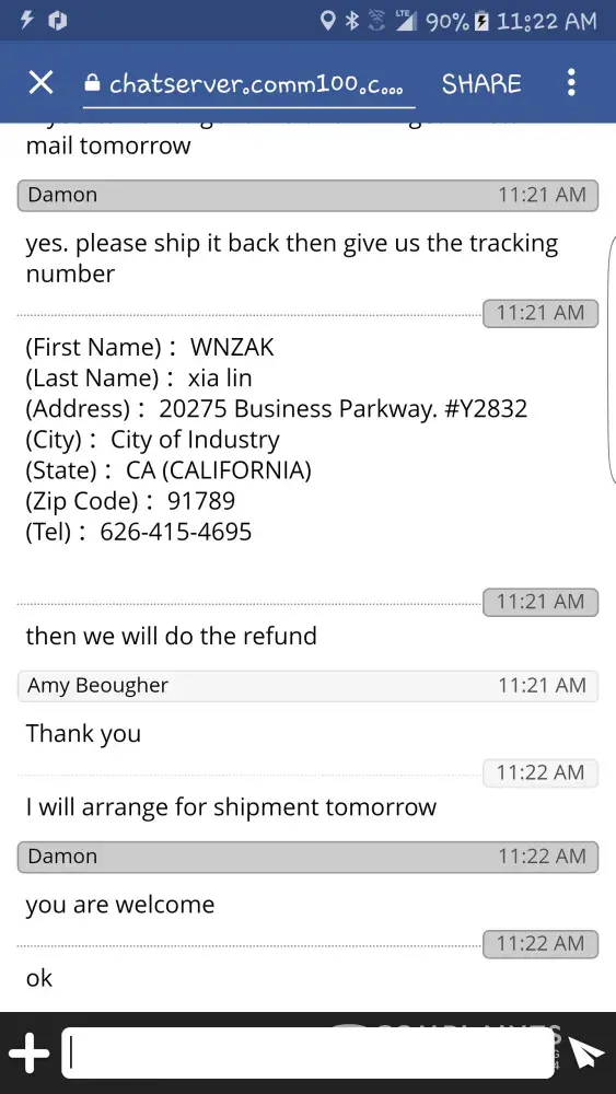 This is only when I sent back the package, send them the link to the usps tracking number that they said, oh no sorry this is a wrong address, you can't send it there, used the provided address.