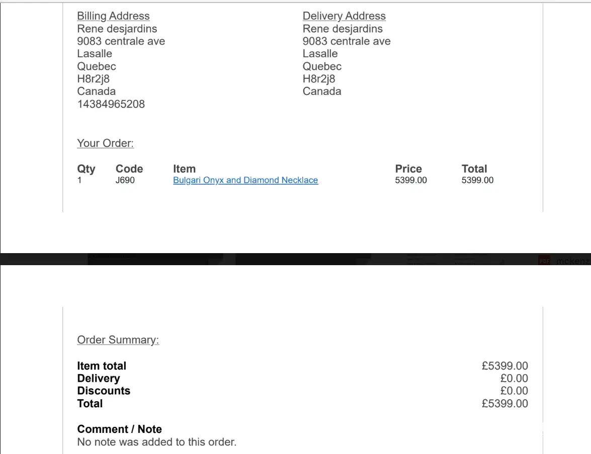 Read full complaint and 1 commentMckenzie Art and Design - Bulgari necklace