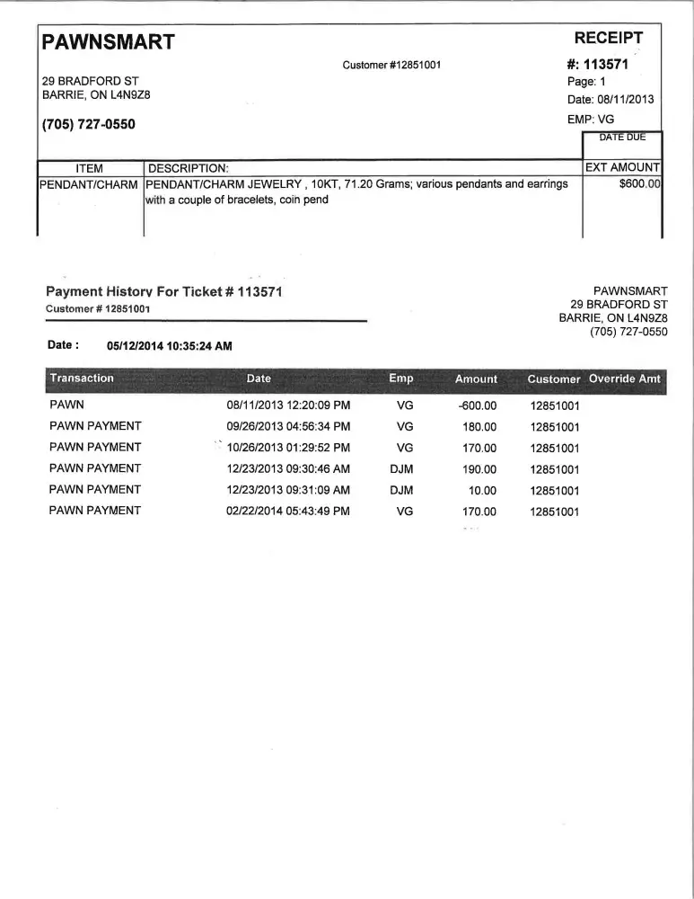 DO NOT DO ANY BUSINESS WITH THESE PEOPLE!!! PLEASE SEE MY ATTACHEMENT AS MY PROOF FROM THEM. I took in quite a bit of beautiful jewellery and they advanced me $600 on my ticket. As you can see in my attachment that I paid back $720 to them & called to make arrangements to pick up my jewellery. They accepted my arrangements & when my husband went in to pick...