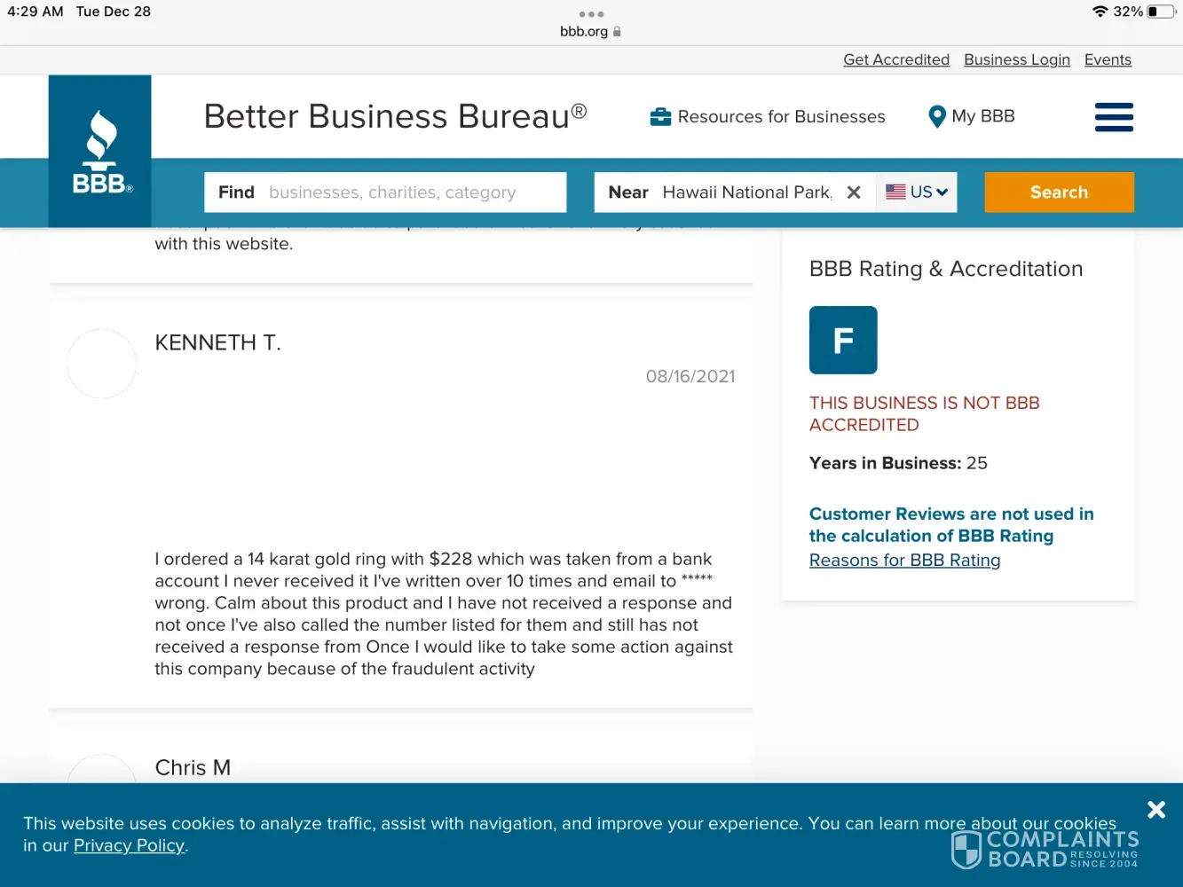 However ComplaintsBoard has detected that: