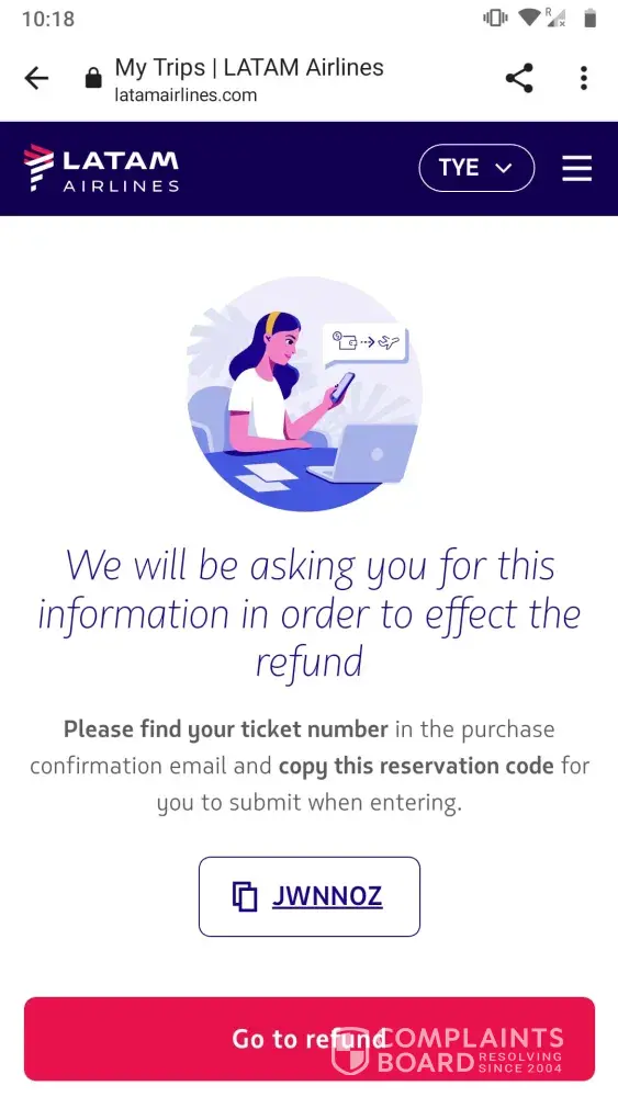 Desired outcome: Refund of the ticket