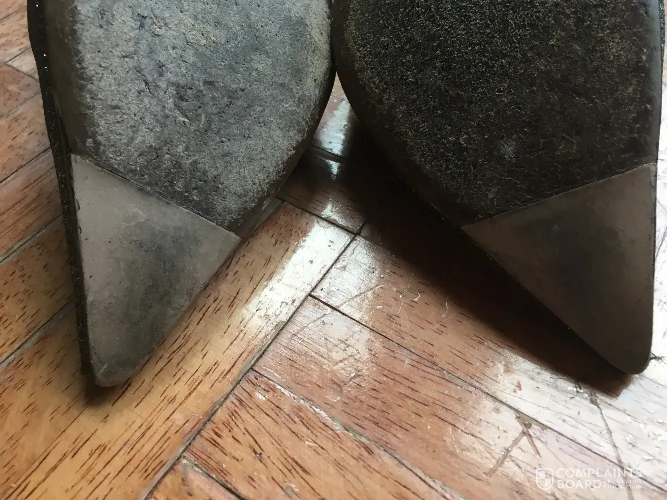 Furthermor, one of the heels came off and when I went to get is replaced the shoe menders advised that acutally the pin was too thin and not far enough up the shaft of the heels so it had snapped. The other one was perfect. They replaced both for me and drilled a heavy type of pin into the heel to hel ensure this did not happen again. Overall I am really disappointed from the quality fo the shoes and as you can see by the images attached these cannot be worn with pride and elegance anymore! I notice that in fact other people have complained of similar problems with this type of shoe. Not very good when they cost close to £500 I await your comments via the email below, to resolve this issue for me.