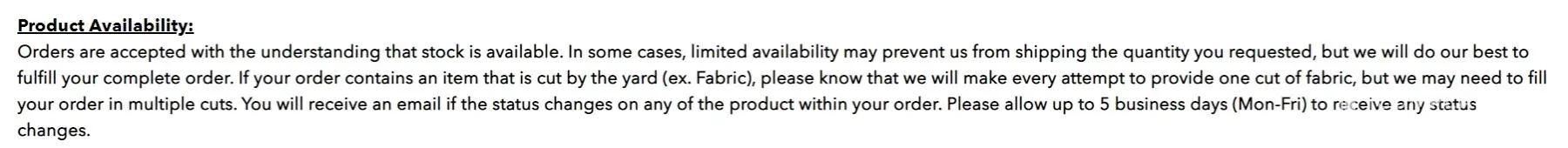 In conclusion, I wish there were other fabric stores in my area that had a decent selection of fabrics that I could feel in-person. I truly wish I didn't have to give a single penny to this awful company because I honestly wish it didn't exist. But because it is my only option, I am going to continue to write reviews on my experiences until there is significant change.