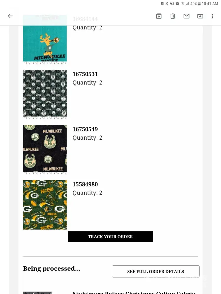 Because I didn’t have a cart, I grabbed one of their handbaskets to put my fabric in and went and got thread which I needed and placed that in the basket also. I then got in line to check out. I placed my basket on the counter which the cashier tipped over on its side to get all the merchandise out. My mistake was to start perusing some magazines they had at the checkout and I didn’t pay too much attention to the check out process. I’m a frequent shopper in this store and know the employees quite well so I didn’t feel I needed to be concerned. I swiped my credit card, grabbed my purchases and left the store.