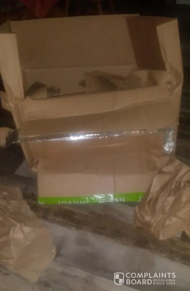 My order # [protected] placed on 8/1/21 arrived in one big MESS. I order quite a bit of yarn from Joann Fabric and have never had this problem before. The box was obviously pieced together with very little tape. Bottom of the box was caved in, brown paper for stuffing was less than beneficial. I am including pictures of the box and the skein of yarn that I can't even use. Looks like someone tried to start it and couldn't - having same problem I do.
