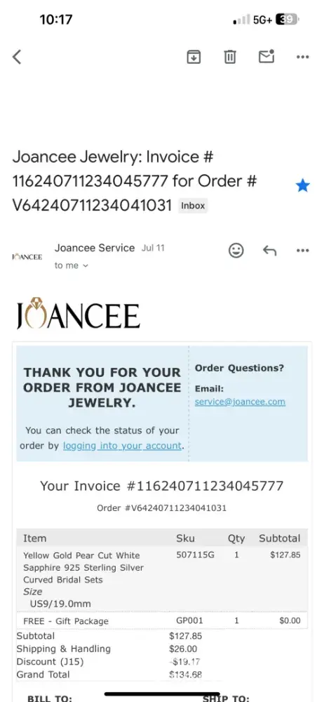 So, I was really excited to check out Joancee's website after seeing all the cool photos and happy customers. I mean, who wouldn't want to get their hands on some of those gorgeous rings, right? I decided to take the plunge and place three orders for a total of six rings. At first, everything seemed great - Ivy was super communicative and helpful, and I was feeling good about my purchases.