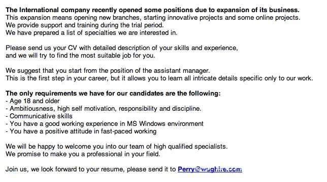 Spam emails for jobs that don't exist