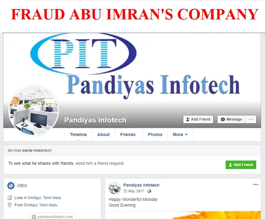 Read full complaintPandiyas Infotech - fraud abu imran helped vinothkumar to cheat rs. 25000 from me