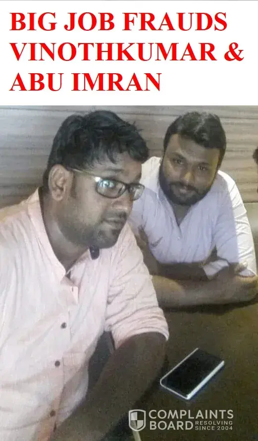 Hi, I am Vignesh from Pondicherry. Vinothkumar collected Rs. 25, 000 from me to place me in the companies "Mindtree" or "Solverminds Solutions and Technologies Pvt Ltd". Then, he told me that a person named "Abu Imran" was working in "Mindtree" company, and he would conduct a telephonic interview for me. After that, Abu Imran called me, and asked me to...