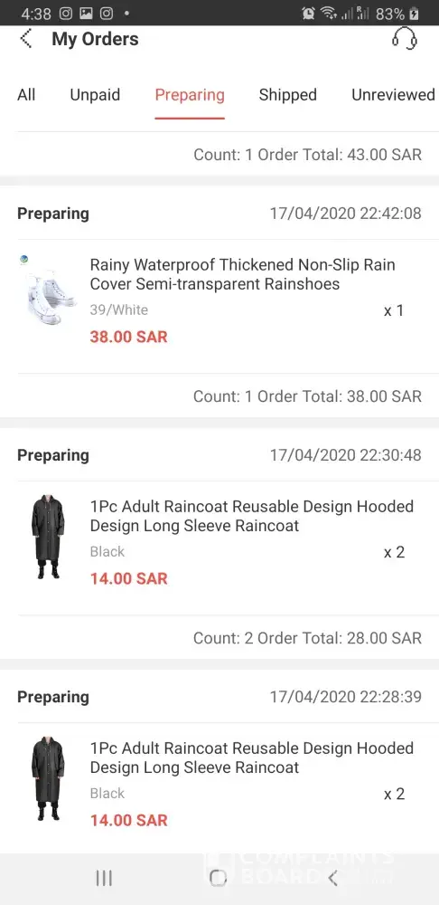 طلبت منهم واقى مطر لأستعمله ÙÙ‰ عملى كطبيبة اعمل بمجال تشخيص الكورونا من يوم Ù¡Ù§ أبريل ØØªÙ‰ Ù£/Ù¥ ÙÙŠ التجهيز هل هذا يعقل؟ وإذا كانت الطلبات غير جاهزة بمستودعاتكم لم تقبلوا طلبات عليها ÙˆØØ¬Ø© الظرو٠الراهنة غير مقبولة لأنكم Ø£Ø¶ÙØªÙ… ١٠ريال على رسوم الشØÙ† Ø§Ù„Ù…ÙØªØ±Ø¶ أنها لدعم الشØÙ† لتصل الطلبات للعملاء لكنهم تريدون الاخذ ÙˆØªØØµÙŠÙ„ الأموال Ùقط بلا ØÙ‚وق للعملاء لديكم