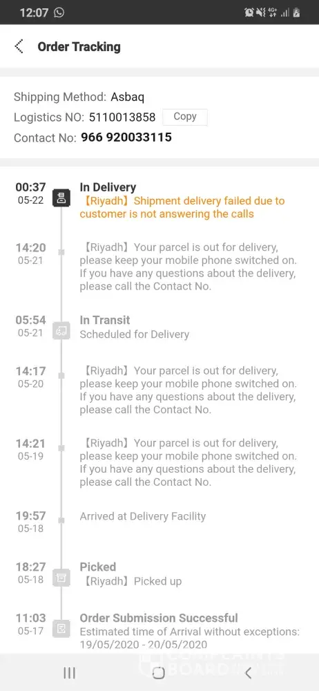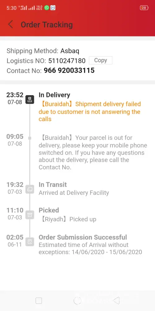 5110013858 Still not get my order it's keep showing me the out for delivery and no one contacted me.. and upto last they will cancel by saying changed address or customer didn't respond.. whenever my orders delivers by asbaq I faced many things .. nowadays zajil are best..