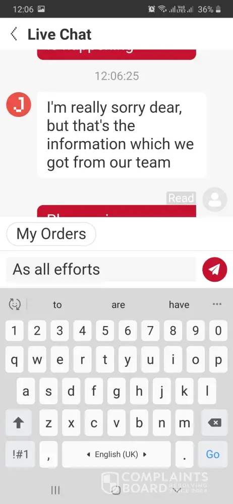 Yesterday the asbaq express called and said he is on his way to deliver my jollychic order, then when he is already downstairs he ask me what is my order I said threadmill, then suddenly he said my order is not with him and it is a big shipment, he didn't even check what to bring, and he said he will deliver tomorrow morning which is today, and its 2pm already I am still waiting for my order. [censored]! Please deliver my order today because tomorrow is Friday its weekend!