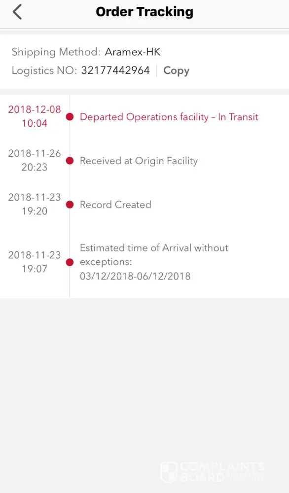 Then after confirming the order I checked the order tracking and I knew that as per the tracking I should receive the order by 6th of December