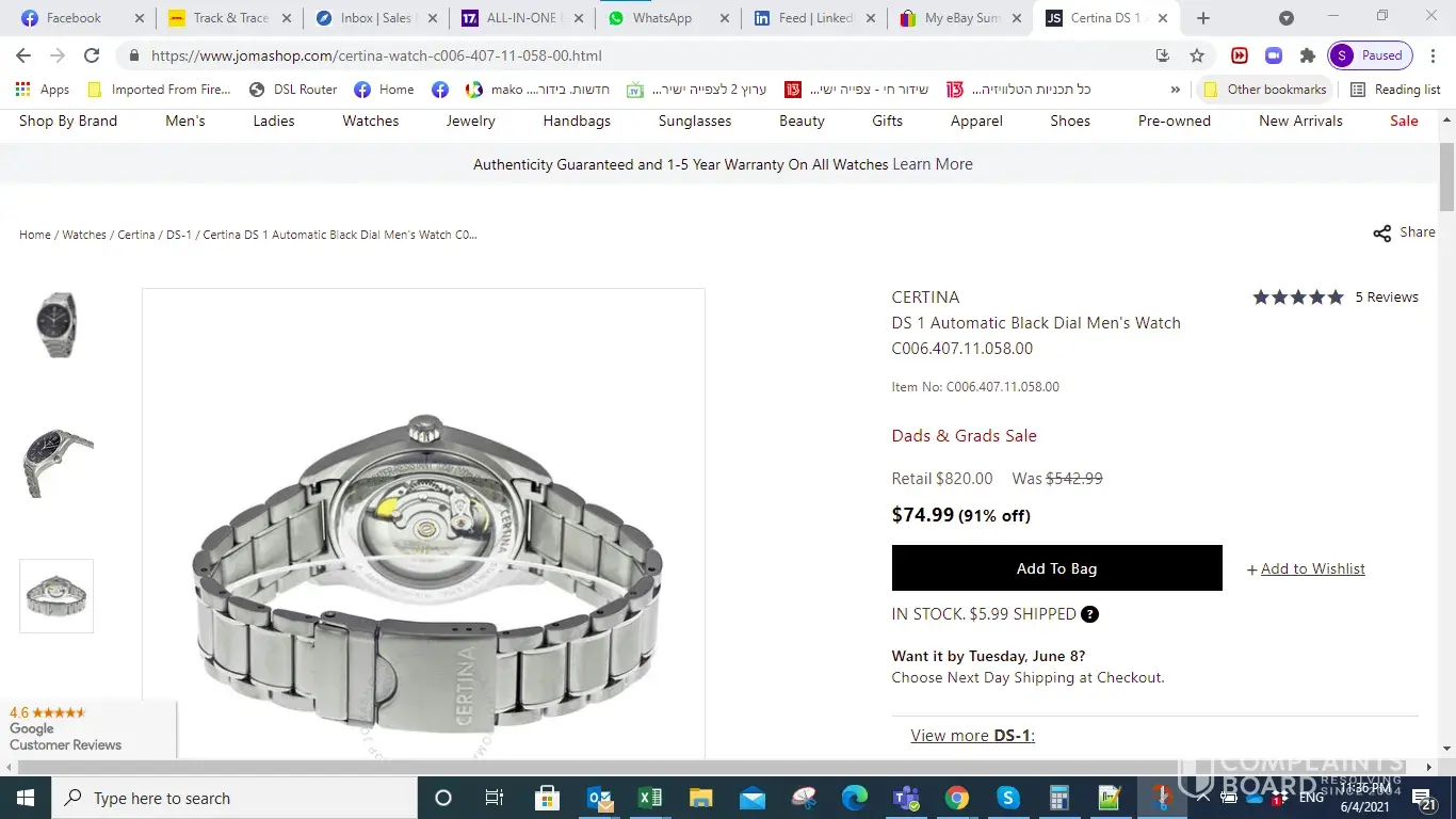 Show some responsibility Jomashop. This is not the first time I bought from you and I don't want to be the last.
