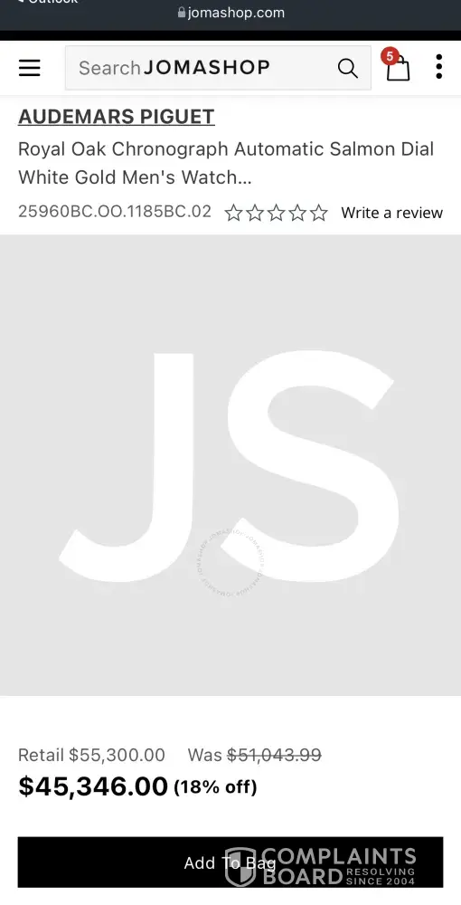 Jomashop Product did not match description ... Told me to pay for return shipping
