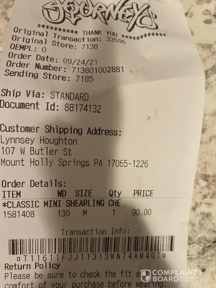 This is horrible customer service, they don't care about customers. They just care about collecting your money and you deal with your loss. Customers don't deal with them and deal with stores that will respect their customers and care about their satisfaction.
