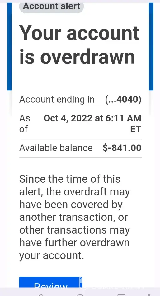 • At no time ever prior to June 15/22 was I advised of a negative balance.