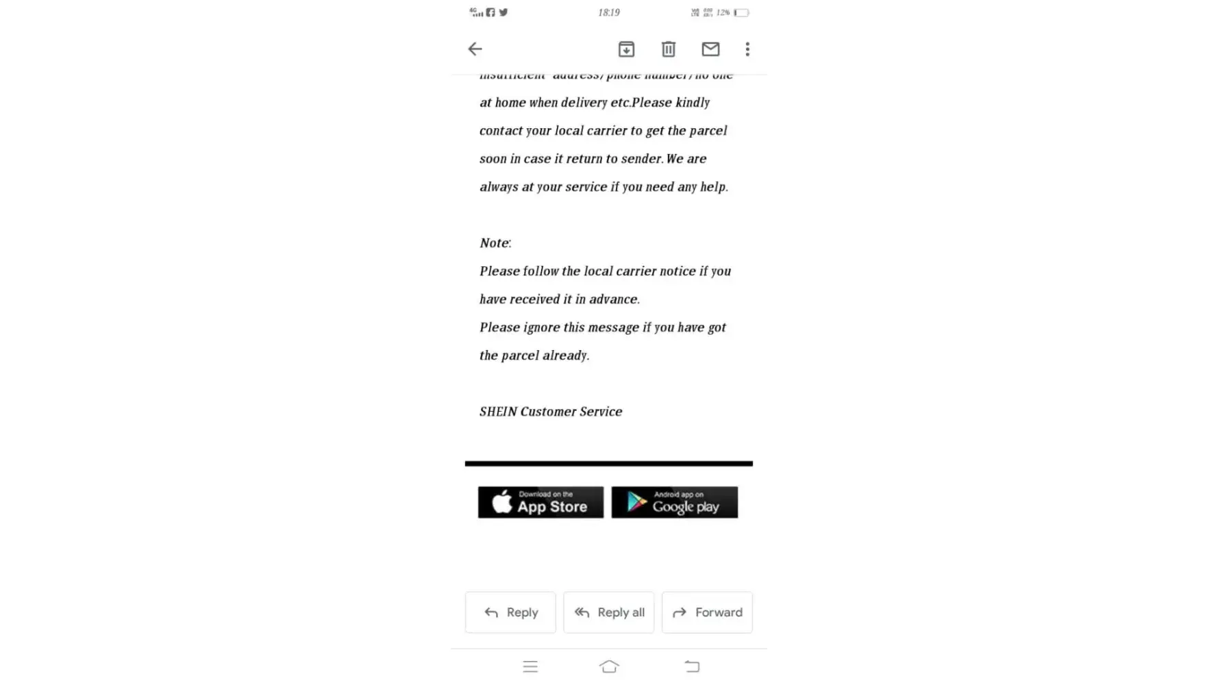 Parcel have not received